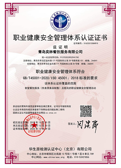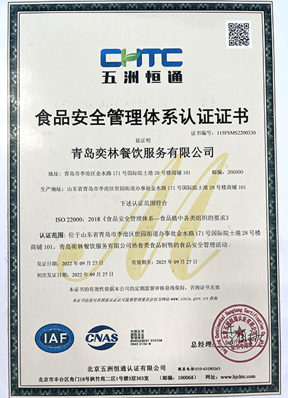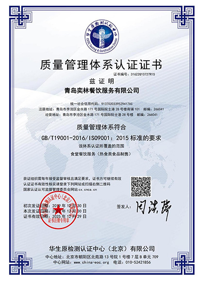 青島奕林餐飲服務有限公司成立于2014年,“奕林”出自成語“門庭赫奕,杞梓之林”代表著擁有眾多的專業(yè)人才,在行業(yè)內(nèi)有一定的聲望和地位。公司是一家基于從廚房設計、設備提供、原材料種植加工、現(xiàn)場及增值服務為一體的全產(chǎn)業(yè)鏈團餐服務商。是青島地區(qū)食堂外包知名企業(yè)。公司先后通過IS09001質量管理體系認證、HACCP危害分析與關鍵控制點體系認證、S014001環(huán)境管理體系認證、ISO22000食品安全管理體系認證和SO45001職業(yè)安全健康體系認證。
