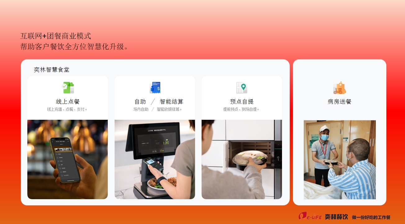 奕林在傳統(tǒng)的食堂外包行業(yè)中,充分利用互聯(lián)網(wǎng)技術運營于企業(yè)經(jīng)營、客戶服務當中,快捷高效的完成以客戶為中心的客戶服務模式,通過互聯(lián)網(wǎng)整合以及客戶互動的方式提供客戶滿意度。
